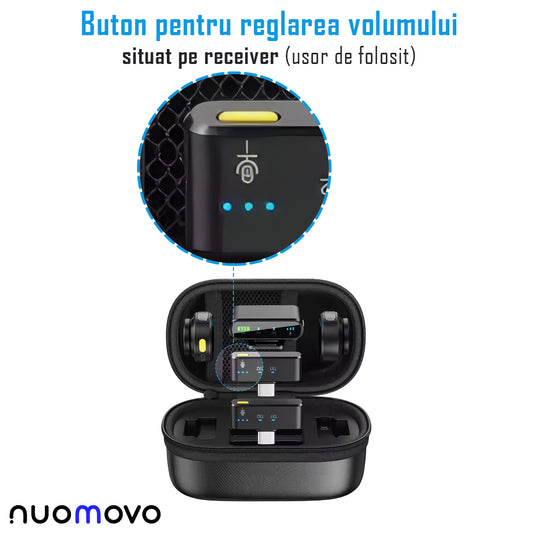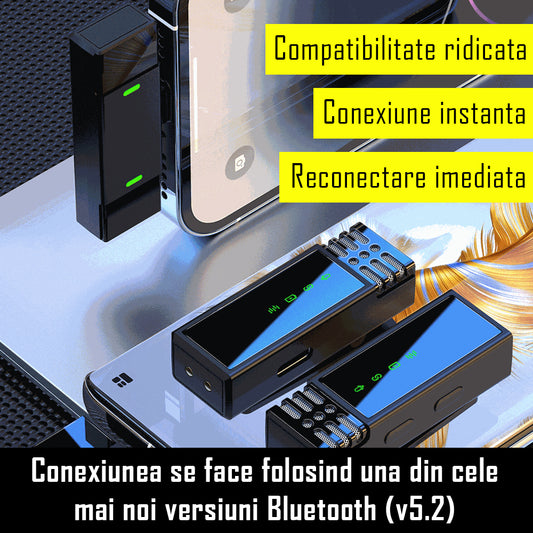 Set 2 microfoane lavaliera profesionale wireless, conectare 2.4G, 2 adaptoare separate type C si lightning, Indicatori led, fara fir, prindere magnetica sau tip lant, plug & play